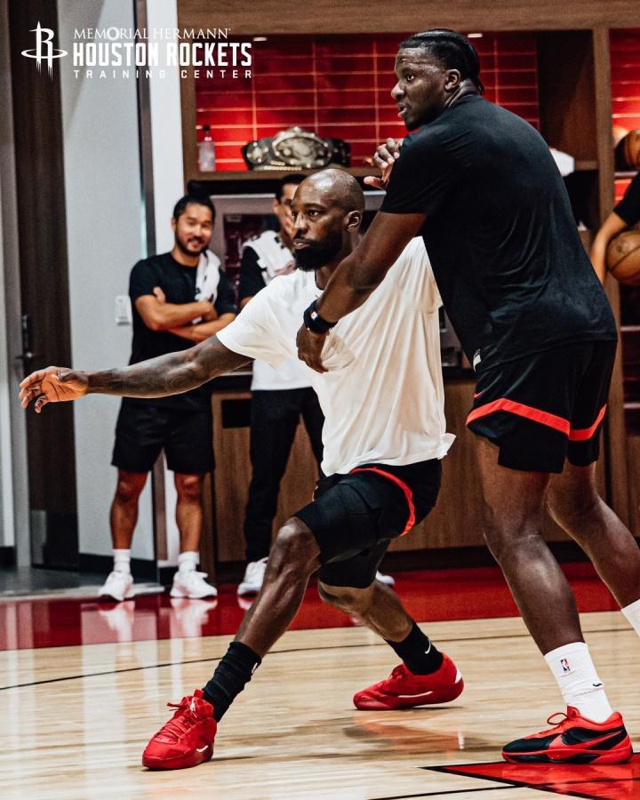 这样的训练和对抗既能让老将范弗里特提前适应强硬的防守,也能让阿门·汤普森得到提升,毕竟这两位球员下赛季都是火箭队的持球核心。而像是卡佩拉、杰夫·格林等球员下赛季也将在第三阵容当中扮演着非常重要的角色,别忘了火箭队另一位老将射手阿隆·霍勒迪既能自己持球推动进攻,也能够投出稳定的三分。上赛季,霍勒迪就力压谢泼德成为了火箭队的第二控卫,新赛季显然霍勒迪将和谢泼德再次展开竞争。