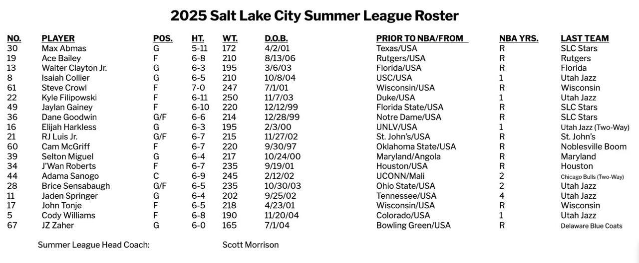 雷速体育7月5日讯 明日NBA盐湖城夏季联赛即将开打,东道主爵士首战将迎战76人。